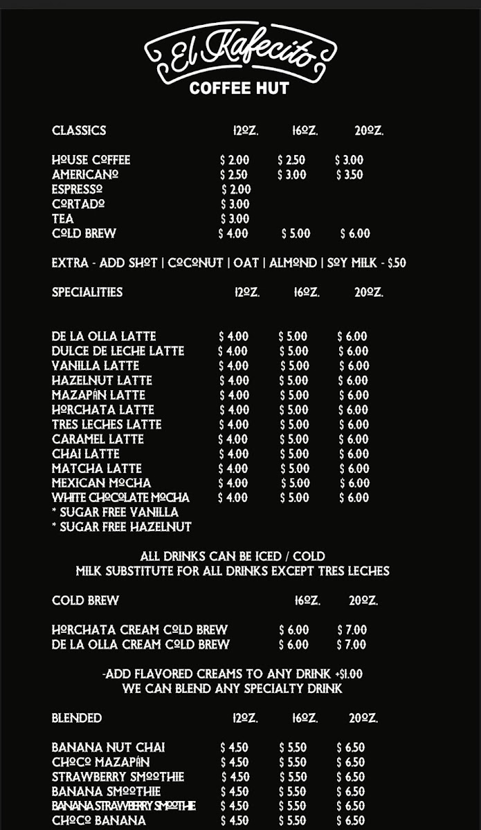 What truly sets El Kafecito apart is its commitment to community and culture. Each sip transports you home, and the warm service adds a personal touch. Whether you're looking for a quick pick-me-up or a cozy spot to unwind, El Kafecito is a destination that satisfies both your taste buds and your heart.